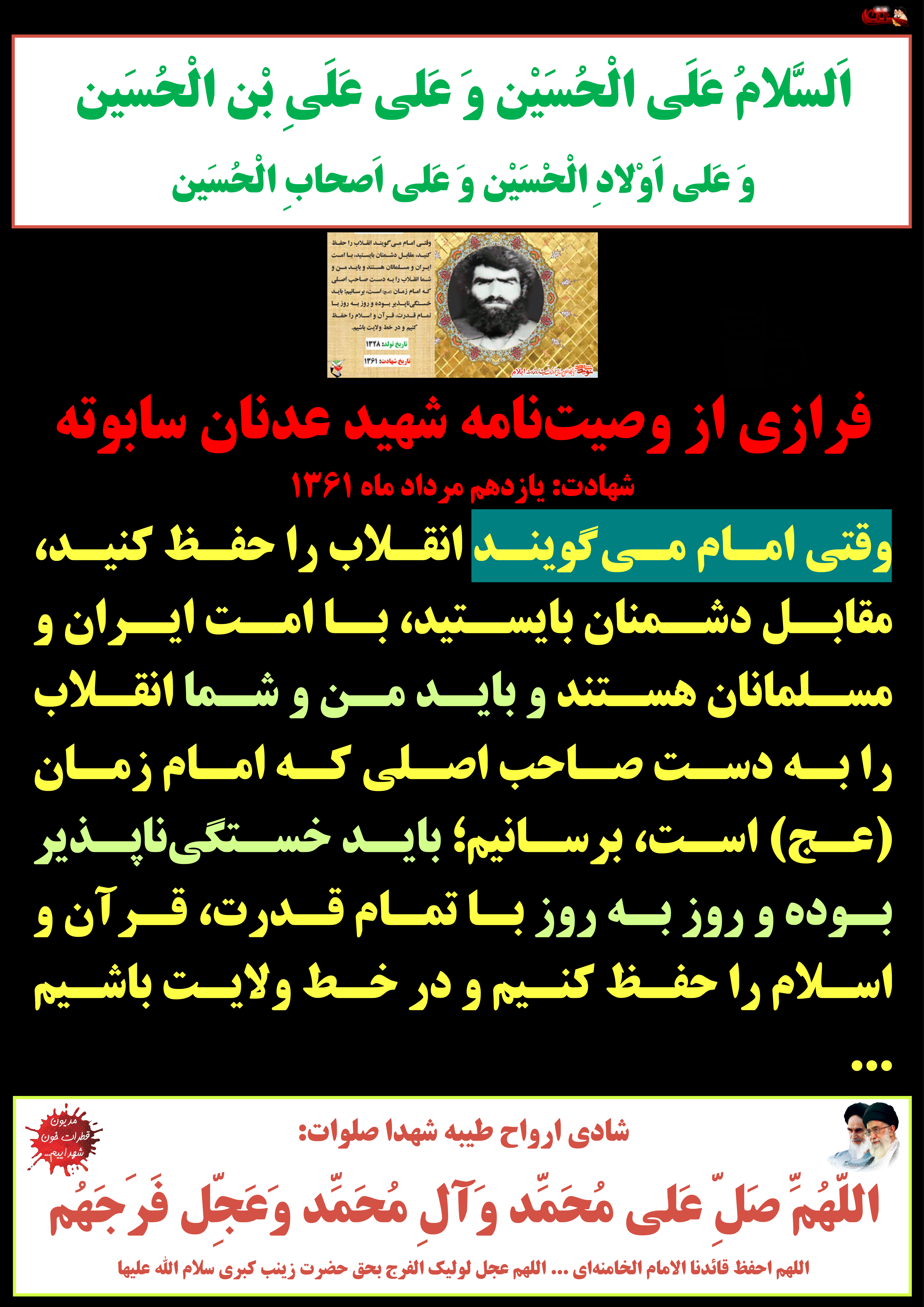 فرازی از وصیتنامه شهید عدنان سابوته