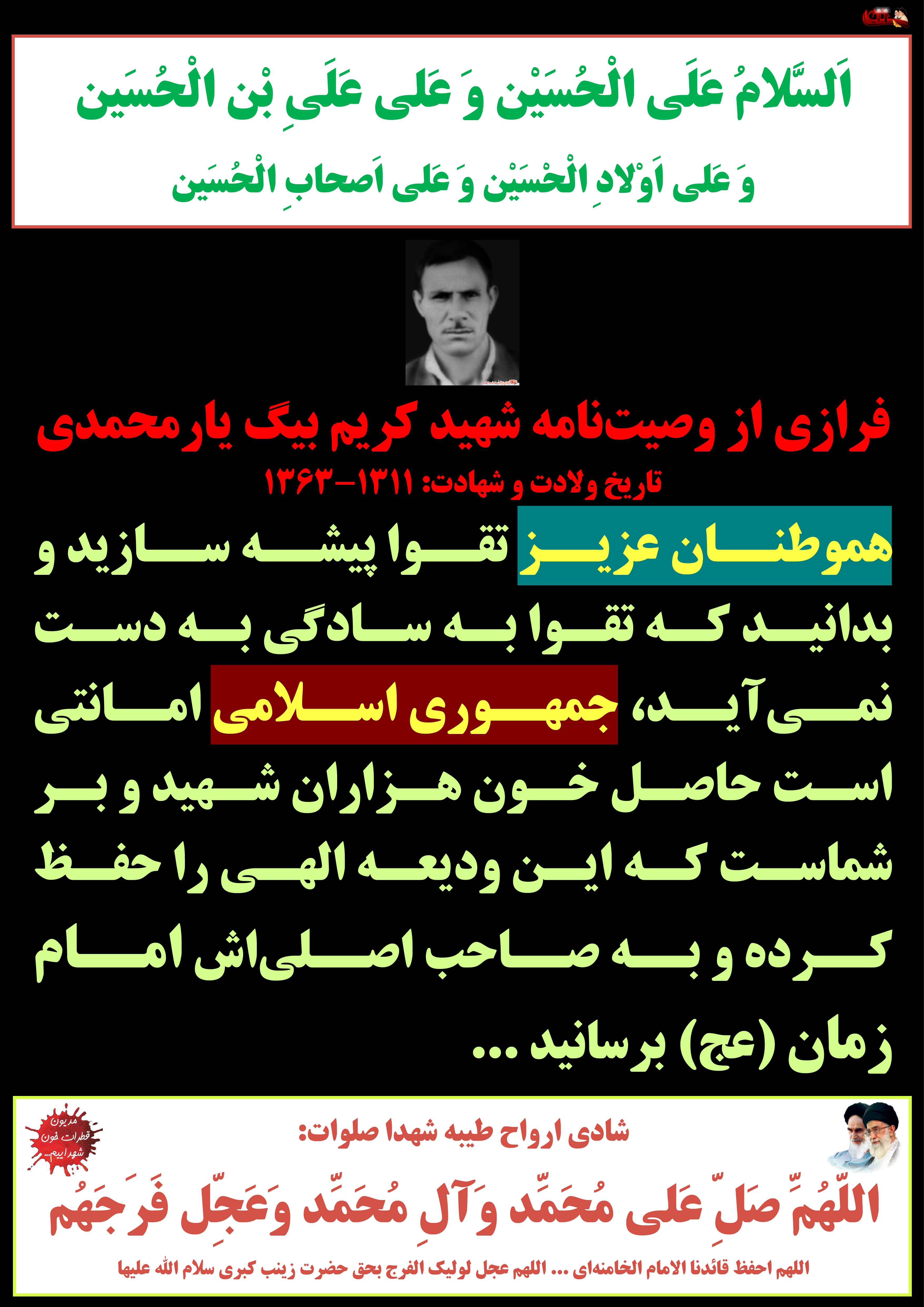 فرازی از وصیتنامه شهید کریم بیگ یارمحمدی