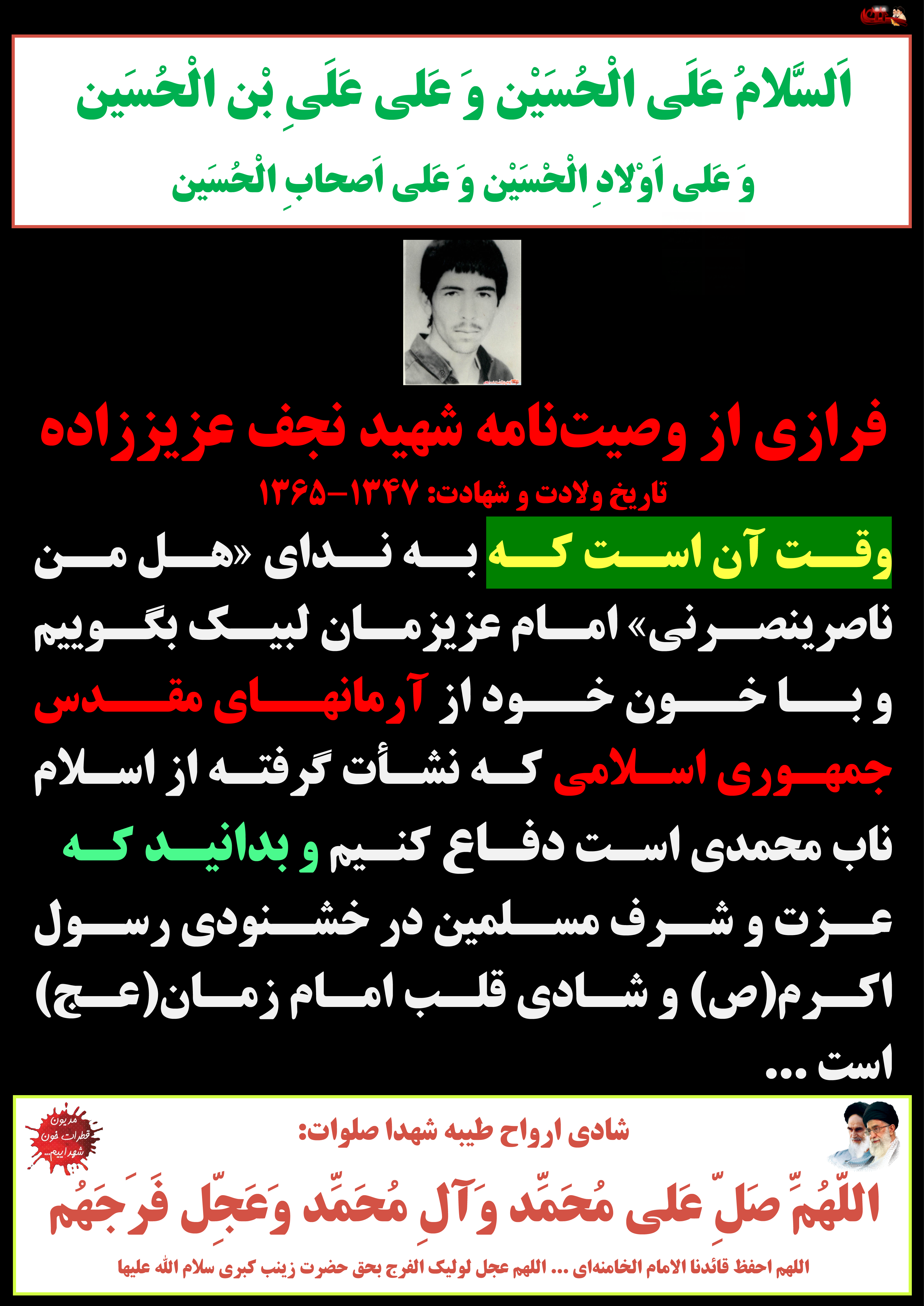 فرازی از وصیتنامه شهید نجف عزیززاده